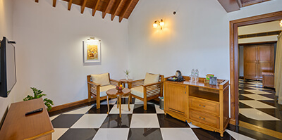 Experience refined comfort in our independent lake-view luxury suite, complete with an elegant living space, a beautifully appointed bedroom, and a private balcony designed for peaceful moments by the water.